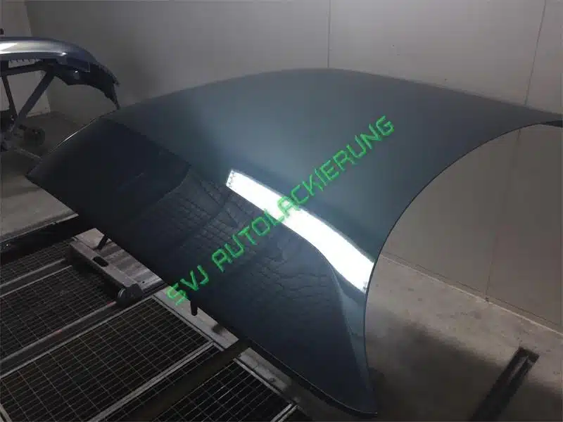 Diese Motorhaube ist nun mit Klarlack lackiert und bei 60 Grad getrocknet